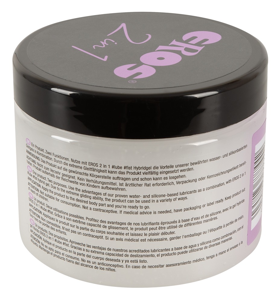 Hybridní lubrikant 2v1 lube & fist od EROS je lubrikant na bázi silikonu a vody, speciálně vyvinutý pro použití při sexu, fisting a s XXL hračkami. Nabízí dokonalou hladkost a dlouhotrvající lubrikaci. Bezpečný pro použití s latexovými kondomy. Bez chuti a zápachu. V kelímku – extrémně úsporný při použití.