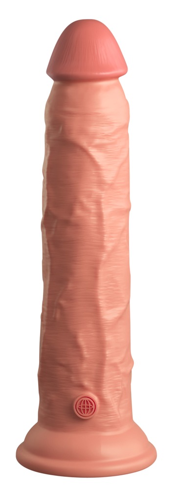 Nádherné dildo 9″ z dvojité hustoty silikonového penisu od King Cock Elite v hyperrealistickém vzhledu penisu vyrobené z dvojité hustoty silikonového materiálu, který se cítí jako skutečná kůže. Samotné dildo má pevný, ale flexibilní dřík, který se hodí do jakékoli polohy.