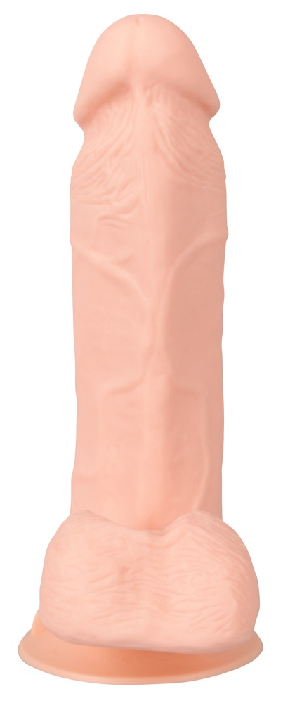 Flexibilní realistický vibrátor Bendable RC Vibrator with Balls od Nature Skin, který vypadá jako skutečný penis s výraznými žilami, vypouklým žaludem a velkými varlaty. Má přísavku, která se bezpečně přichytí na jakýkoli hladký povrch a umožňuje potěšení bez použití rukou. To také znamená, že realistický vibrátor je kompatibilní se strap-ony a postroji.