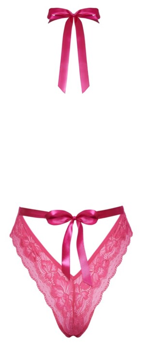 Drzé a hravé body od kissable je kompletně vyrobeno z jemné růžové krajky. Měkké a pružné po celé délce pro maximální pohodlí. Svůdný styl s velkým výstřihem vpředu od krku až k pasu. Volná záda, saténová stuha se zavazuje u krku, stejně jako saténová stuha v pase s výstřihem do V nad spodním dílem.
