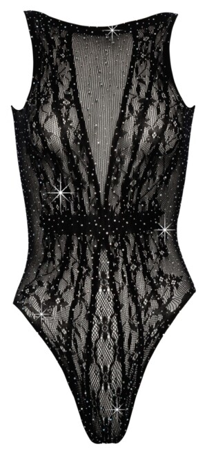Body od Cottelli FANTASY vyrobené z jemného, měkkého, poloprůhledného strečového materiálu – po celém těle posázené kamínky různých velikostí. Vpředu s vetkanými úponkovými detaily. Krásný výstřih v horní části zad. Celé bezešvé, bez výrazných lemů, elastické a poddajné pro velké pohodlí.
