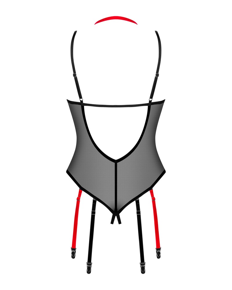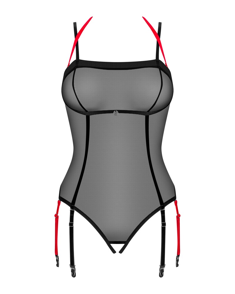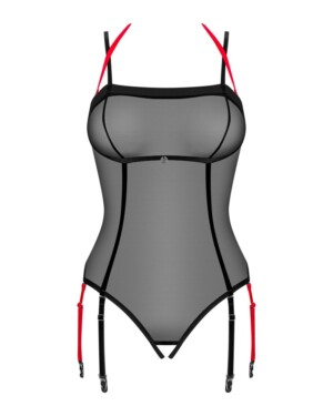 Poloprůhledné body Glandez od Obsessive rychle odhalí prsa díky odnímatelnému výstřihu. Ramínka na podvazky jsou také odnímatelná, díky čemuž je body extrémně všestranné. Rozkrok je lákavě odhalen pro sexuální prozkoumávání.