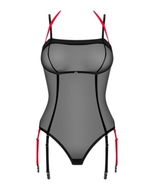 Poloprůhledné body Glandez od Obsessive rychle odhalí prsa díky odnímatelnému výstřihu. Ramínka na ramínka jsou také odnímatelná, takže body je všestranné a snadno se kombinuje s jiným oblečením.