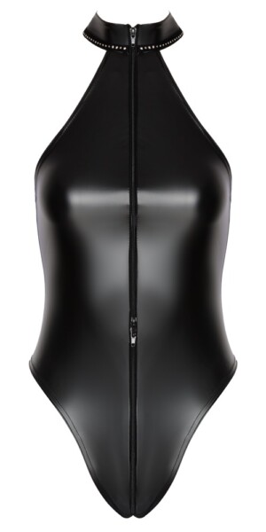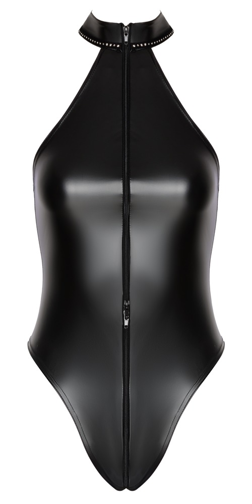 Tričko Accentuating Body Libido Exclusive od Noir v černém powerwet vzhledu – padne jako druhá kůže. Měkké a pružné pro maximální pohodlí. Přiléhavý střih s odhalenými rameny a třpytivými kamínky na stojáčku. Celoprocentní obousměrný zip vede od límce přes rozkrok až nad spodní část kalhot. Extra vysoké výstřihy nohavic vzrušujícím způsobem zvýrazňují zadeček a nohavice.