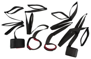 4 pouta na ruce nebo nohy na 115 cm dlouhých popruzích s poutky. Všechny pouta jsou měkce polstrované a lze je nastavit pro něj i pro ni pomocí suchého zipu. Vyrobeno z odolného syntetického vlákna. 100% polyamid. 4dílná sada.