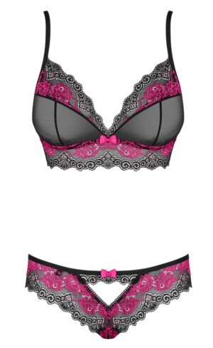 Tato sada Tulia od Obsessive kombinuje romantickou krajku se vzrušující estetikou. Průhledná podprsenka bez kostic je vyrobena z krajky ve dvou různých barvách, což umožňuje drzé pohledy na to, co se skrývá pod ní. Kalhotky jsou celé vyrobeny z krajky a mají ozdobný výřez vpředu i vzadu. Sada je také velmi pohodlná na nošení, takže je vhodná i pro každodenní nošení.