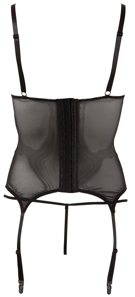 Lichotivé tílko s kšandami vyrobené z průhledné síťoviny Powernet. Vpředu je spousta vodorovných a svislých pruhů, které vytvářejí efekt „wet look“. Vzadu je také zapínání na suchý zip. Podprsenka a čtyři ramínka kšand jsou nastavitelná. 80% polyamid, 10% polyester, 10% spandex. Součástí jsou tangá vyrobené výhradně z síťoviny Powernet: 90% polyamid, 10% spandex.