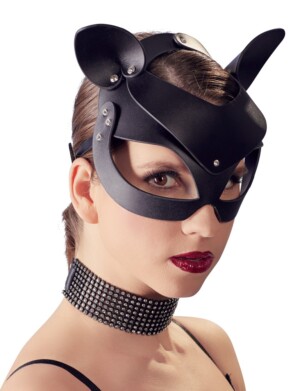 Odolná maska z imitace kůže se smyslnými kočičími ušima a malými kamínkovými nýtky. S druky a přezkou vzadu pro ideální padnutí. Ideální pro napínavé hraní rolí.