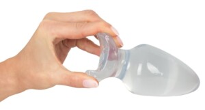 Zúžený tvar análního kolíku usnadňuje zavádění. Zarážka zabraňuje přílišnému zasunutí kolíku a průhledný materiál poskytuje skvělý výhled.