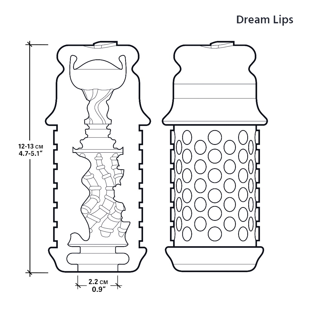Hedvábně měkké návleky Dream Sleeve Lips od Handy s různorodou texturou s nopky pro intenzivní masáž penisu s pocity z orgie. Uzavřené na jednom konci, velmi pružné – hodí se na jakýkoli penis. Opakovaně použitelné, odolné a snadno se čistí. Délka 12 cm–13 cm, vnitřní průměr 2,2 cm. TPE.