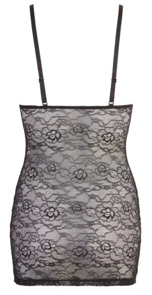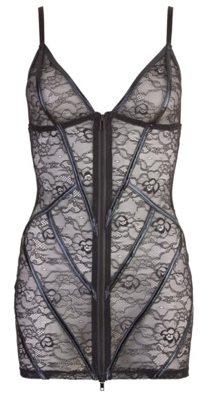 Tyto černé šaty od Cottelli LINGERIE jsou vyrobeny z jemné květinové krajky a mají trendy mokrý vzhled vpředu. Tyto šaty nejsou tak nevinné, jak vypadají, protože můžete během mžiku oka ukázat své sexy tělo, pouhým rozepnutím oboucestného zipu po celé délce… S nastavitelnými ramínky. 90% polyamid, 10% spandex.