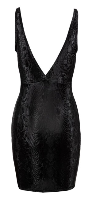 Trendy krátké šaty od Cottelli PARTY jsou vyrobeny z třpytivého, lesklého matného materiálu. Mají také vzor hadí kůže. Jsou zúžené a mají velmi hluboký výstřih vpředu i vzadu. Šaty jsou úžasně pružné, což znamená, že jsou přiléhavé, ale zároveň velmi pohodlné.