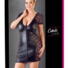 Poloprůhledné korzetové šaty Rebellious Exclusive od Noir s pruhy, tvarujícími kosticemi, nastavitelnými vinylovými ramínky a ozdobnými ramínky. S krátkou, rozšířenou sukní z lesklého vinylu. Krásná výšivka na košíčcích, ozdobné vinylové pruhy a zip po celé délce vpředu dotvářejí sexy outfit.