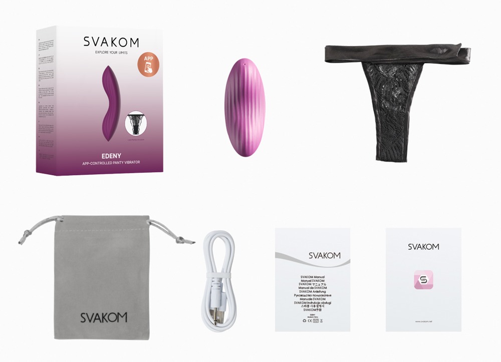 Dobíjecí vibrátor s připínacím mechanismem, který lze umístit do přiložených krajkových kalhotek pro tiché a diskrétní potěšení. Vibrátor se v kalhotkách neposouvá. Malý, snadno použitelný vibrátor s připínacím mechanismem má skvělý ergonomický tvar, který se dokonale přizpůsobí konturám těla. Vibrátor je měkký a ohebný. Má také stimulační drážky. 11 tichých vibračních režimů lze snadno ovládat pomocí aplikace nebo Bluetooth – kdekoli na světě, kdykoli a kýmkoli. Součástí balení je USB kabel a úložný sáček.