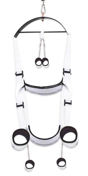 Tato bondage houpačka s pouty na zápěstí a kotníky umožňuje obtížné sexuální polohy – bez nutnosti kroutit se. Upevnění ke stropu je extrémně snadné. Výšku a úhel lze individuálně nastavit. Je také ideální pro páry s velkým výškovým rozdílem. Nastavitelné, odolné pouta lze připevnit k různým D-kroužkům na robustních řetězech, které zajišťují bezpečné uchycení a zároveň otevírají možnost různých poloh omezení při houpání. Polstrovaná sedací plocha je velmi pohodlná a poskytuje velké pohodlí. Součástí je montážní příslušenství a návod k použití.