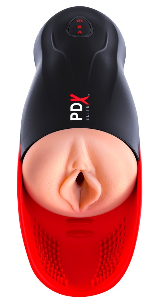Masturbátor se stimulátorem varlat Fuck-O-Matic od PDX Elite v realistickém tvaru vagíny s rytmickou funkcí sání (5 režimů) a vibrací (10 režimů) pro velmi stimulující masáž penisu a varlat. 2 výkonné motory – jeden ve špičce a jeden ve stimulátoru varlat – lze snadno ovládat stisknutím tlačítka a jejich funkce lze také kombinovat.
