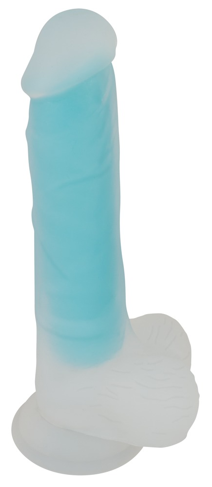 Realistické, mléčně průhledné dildo Glow in the Dark od You2Toys má tyrkysové jádro, které svítí ve tmě. Má velká varlata, výrazný žalud a žíly stejně jako skutečný penis. Je vyrobeno z bezešvého, neporézního tekutého silikonu. Velmi měkký povrch se téměř sám klouže po pokožce a do intimních partií. S praktickou přísavkou pro zábavu bez použití rukou.