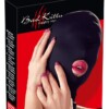 Černá přiléhavá maska na hlavu z elastické látky. S otvory pro oči a ústa.