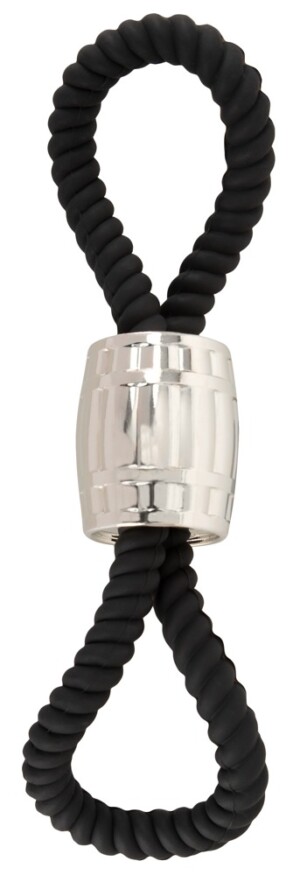 Černý robustní erekční popruh/poutko Heavy Rope Cock Strap se dvěma poutky od Rebel v lanovém designu s elegantním posuvným kovovým závažím (87 g). Flexibilní silikonové dvojité poutko lze umístit kolem penisu pro omezení průtoku krve a posílení erekce. Po umístění kolem varlat mají poutka vzrušující úchopný účinek. Nošení kolem penisu A varlat je obzvláště efektivní. Toto těžké vybavení je perfektním společníkem na další dlouhou jízdu!