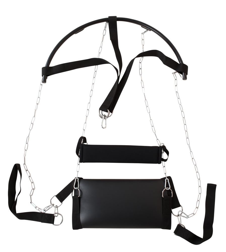 Houpačka s polstrovaným sedákem, který lze upevnit pomocí lan. Odnímatelný polstrovaný popruh slouží jako opěradlo. Vhodné pro misionářský a doggy style sex. Bez montážního příslušenství. Maximální nosnost: 100 kg. Rozměry sedáku cca 53 x 28 x 5 cm. PP, PU, kovové části (chromované a pozinkované, rám pozinkovaný).