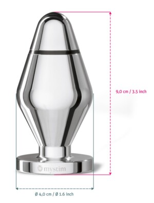 Anální kolík Little John od Mystimu je určen pro stimulační zařízení Tension Lover nebo Pure Vibes od Mystimu. E-stimulační kolík je díky svému průměru 5 cm skvělou anální hračkou. Hladký kov se zužuje, takže se anální kolík snadno zavádí. Dva póly jsou uvnitř po několika centimetrech, takže e-stimulaci lze cítit velmi brzy. Brnění si můžete užívat celé hodiny, nebo lze stimulaci měnit a intenzivněji ovlivňovat, abyste dosáhli senzačních orgasmů. Kovový kolík lze před použitím zahřát na radiátoru nebo vychladit v lednici.