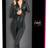 Overal s důrazem na střih Libido Exclusive od Noir v černém powerwet vzhledu – padne jako druhá kůže. Měkký a pružný pro maximální pohodlí. Přiléhavý střih se stojáčkem, krátkými rukávy a dlouhými nohavicemi. Zapínání na háčky u krku. Vespod velký výstřih a otevřené nastavitelné šněrování až dole. V rozkroku s obousměrným zipem – praktický a zároveň svůdný!