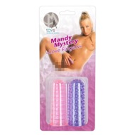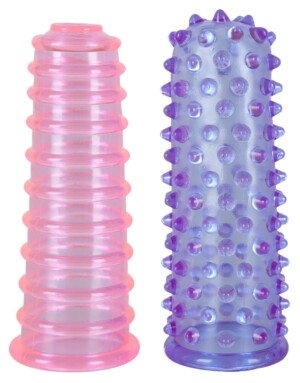 Lze je snadno navléknout na prsty a poté je použít k laskání partnera nebo osoby, která je nosí. Lze je použít kdekoli na těle – klitoris i žalud si užijí laskání! 1 návlek má drážky a 1 návlek má tečky. V zářivě růžové a fialové barvě. Každý návlek je dlouhý 8 cm, Ø 2,5 cm, velmi flexibilní – hodí se i na malé vibrátory. PVC.