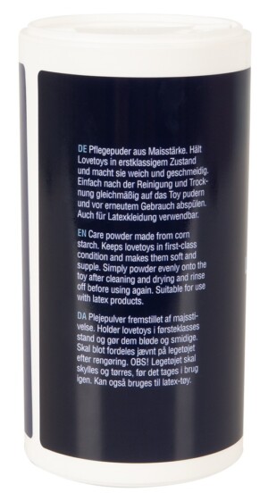 Pudr Love Toy udržuje sexuální hračky v perfektním stavu a zanechává je měkké a hladké. Pudr jednoduše naneste po vyčištění a osušení. Vhodný také pro použití s latexovými výrobky. Po použití pevně uzavřete praktickou dózu s pudrem, aby kukuřičný škrob neabsorboval vlhkost.