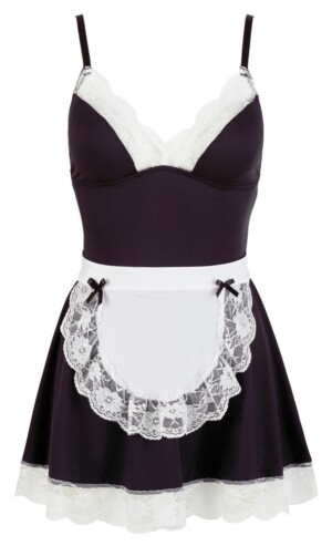 Šaty, které lichotí postavě, s nastavitelnými ramínky a mírně rozšířenou sukní. Bílá krajka na lemu a v oblasti výstřihu. Součástí je zástěra, kterou lze zavázat. Zástěra má také krajku a ozdobné mašle.