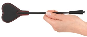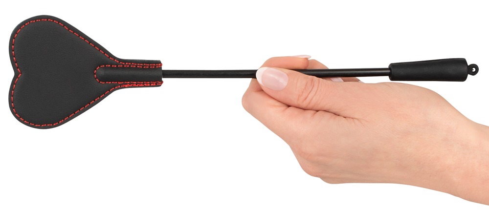 Žhavé kousky! Malý černý crop s pádlem (design se může lišit). Jedna strana je z kůže a druhá z umělé kožešiny. Červené prošívání.