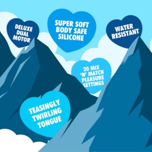 Roztomilý vibrátor Mount’n Peak (The Pinty Tongued One) od Unihornu ve tvaru malého jednorožce. Měkká, protiskluzová silikonová hračka poskytuje intenzivní potěšení s vibracemi a jemným, energicky vířícím jazýčkem v otevřených ústech. Luxusní duální motor poskytuje spolehlivý výkon. 10 různých režimů vibrací a pohybu jazyka lze ovládat samostatně stisknutím tlačítka. Kouzelná hračka pro všestranné hraní – o samotě nebo ve dvojici – doma nebo na cestách!