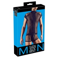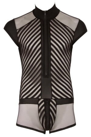 Tento overal s krátkým rukávem postaví svého nositele do centra pozornosti! Dva typy síťoviny a moderní pruhovaný design umožňují drzé pohledy. Zip vpředu a polstrovaný zip na kapse.