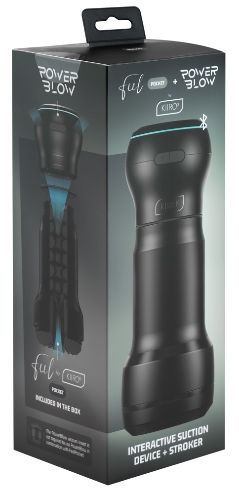 Masturbátor Feel Pocket Stroker + sací nástavec PowerBlow v kombinované sadě Kiiroo. Dynamické duo pro intenzivní pocity z kouření s regulací sání. Praktický, diskrétní a vhodný pro jakýkoli penis.