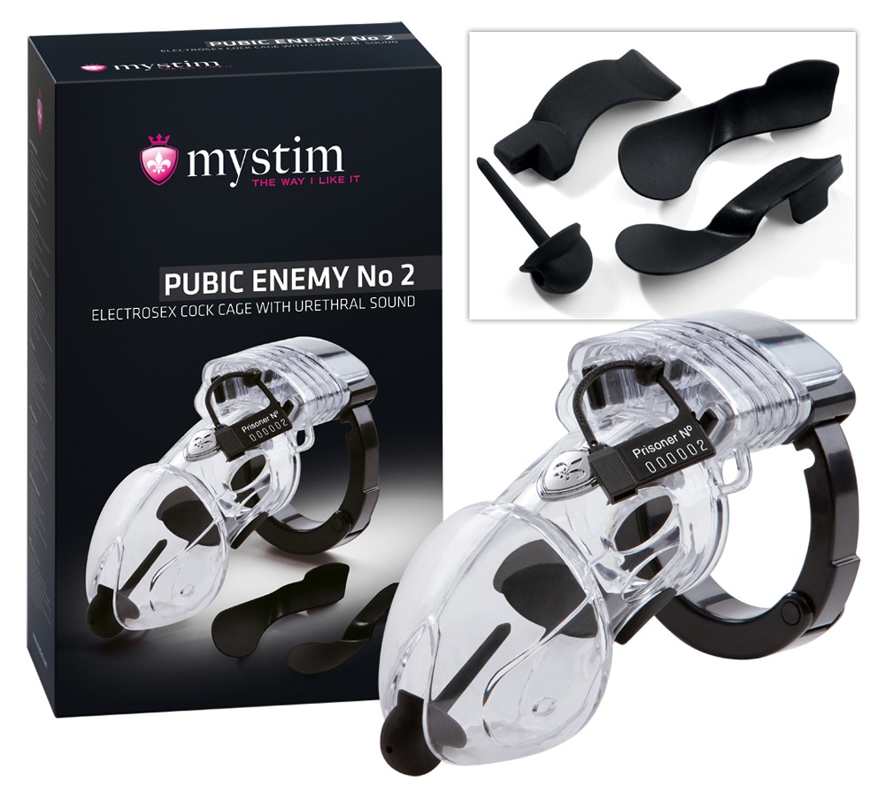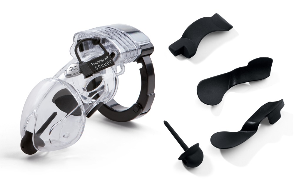 Průhledná, pevná klec na penis se svorkou, fixačním diskem, třemi podložkami, kovovým zámkem se dvěma klíči, 1 odnímatelným dilatátorem, kabelem elektrody, 5 plastovými těsněními a deseti značkami posedlosti. Materiál: silikon, PC, ABS. Příslušenství pro stimulační zařízení Tension Lover (05289270000) a Pure Vibes (05297610000). Vše dodáváno v černém pevném pouzdře.
