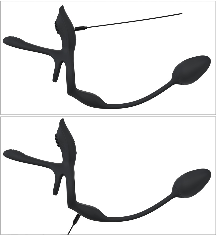 Používání je velmi snadné: kroužek na penis a varlata se nasazují tak, aby plochý vibrátor pro páry přiléhal na penis. To mu umožňuje rozmazlovat partnerku silnějším penisem během sexu a sám cítit nádherné napětí. Kroužek na penis také díky efektu prokrvení dlouhodobě podporuje erekci. A kroužek na kuličkách poskytuje pevné, bezpečné držení a vzrušující trakci. Jemně zvýrazněný vibrátor na klitoris hýčká její pálivé místo během sexu. Vibrační kolík se zavádí análně, buď samotným uživatelem, nebo pro dodatečnou anální stimulaci partnera.