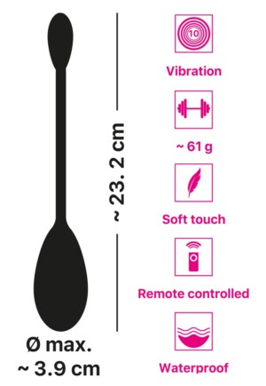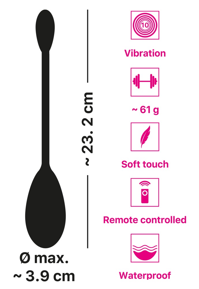 Dobíjecí vibrační míček RC Single Vibrating Love Ball od You2Toys má 10 různých vibračních režimů, které lze snadno ovládat tlačítkem na konci flexibilních popruhů nebo dálkovým ovladačem. Dálkový ovladač má dosah 5 metrů, což znamená, že jej může používat i partner! Vibrační míček váží 61 g, což znamená, že je ideální pro začátečníky, kteří si chtějí vyzkoušet vaginální trénink. Vibrační míček je potažen měkkým silikonovým materiálem a je příjemný na kůži při nošení i při používání pro potěšení. Vibrační míček je také vodotěsný, což znamená, že si ho můžete užívat ve vaně nebo ve sprše. Součástí balení je USB kabel. Součástí balení je úložný sáček.