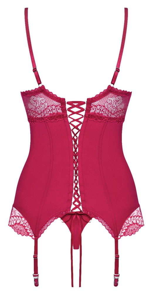 Soustřeďte se a představte si kumulaci smyslnosti a ženskosti na jednom místě. Sexy padnoucí šněrování na zádech bude svádět zvědavé oko, takže buďte opatrní! Tmavá vínová barva a jemná krajka dodají akcent elegance, takže se budete cítit jako dáma v červeném!