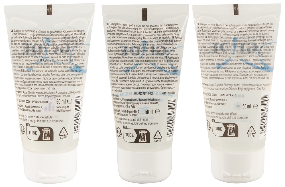 3 x 50 ml »Na vodní bázi«, »Hračky« a »Anální«.