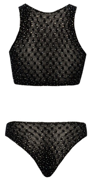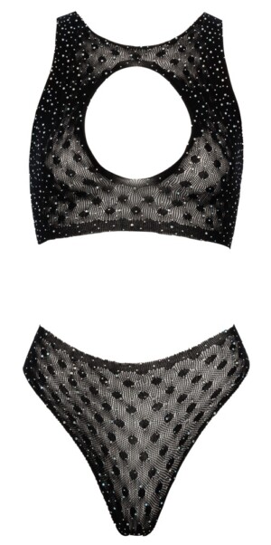 Top a tanga od Cottelli FANTASY vyrobené z jemného, měkkého a poloprůhledného strečového materiálu – zdobeného velkými kamínky. Top má krásný výstřih. Celý top je bezešvý, bez výrazných lemů a zároveň super pružný pro nejvyšší úroveň pohodlí.