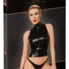 Vzrušující sada od Cottelli BONDAGE, která se skládá z topu, kalhotek a 6 měkkých podvazků. Stylová kombinace materiálu průhledné síťoviny PowerNet a matného vzhledu v designu ramínek se stříbrnými doplňky. Je měkká a pružná pro pohodlné nošení. Top má druky, které lze otevřít přes prsa. Stojáček se 2 druky vzadu za krkem. Podvazky jsou přišity k kalhotkám do pasu, které mají také nastavitelné stehenní ramínka. Druky přes rozkrok až k horní části hýždí. Měkké podvazky lze protáhnout kroužky po stranách topu a kalhotek. Měkké podvazky se snadno oblékají a sundávají díky nastavitelným suchým zipům.