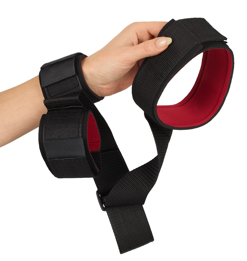 Kombinovaná sada pout na krk a ruce. Měkce polstrovaná a individuálně nastavitelná díky suchým zipům. Vyrobeno z odolného syntetického vlákna.