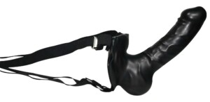 Strap-on dildo Switch od You2Toys vyrobené z černého měkkého latexu, s výraznými varlaty a jemným žilkováním. Elastické a nastavitelné pásky udržují penis na místě.