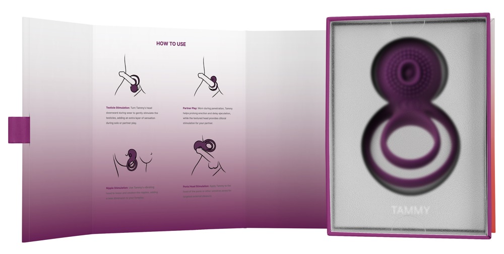 Sametově měkký vibrační erekční kroužek s tečkovaným klitorisovým nástavcem a dalším kroužkem na varlata. Stimuluje 5 tichými vibračními režimy v 5 různých intenzitách. Pohodlně nastavitelný stisknutím tlačítka. Včetně praktického úložného sáčku a USB kabelu pro dobíjení.